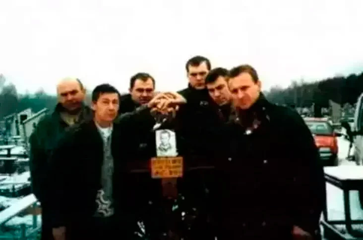 Сяргей Элькінд (трэці злева) з братвой на магіле аўтарытэта «Мацвея», пераемнікам якога стаў «Заяц». Фота: Ежедневнік
