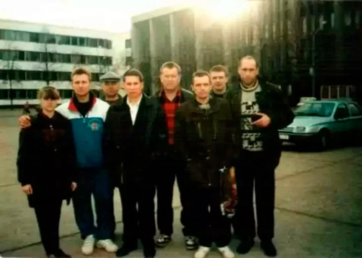 Генадзь Элькінд (цяперашняе яго прозвішча — Скітоў) крайні справа ў кампаніі людзей, некаторых з якіх адносілі да барысаўскага крыміналітэту. Фота: Ежедневнік