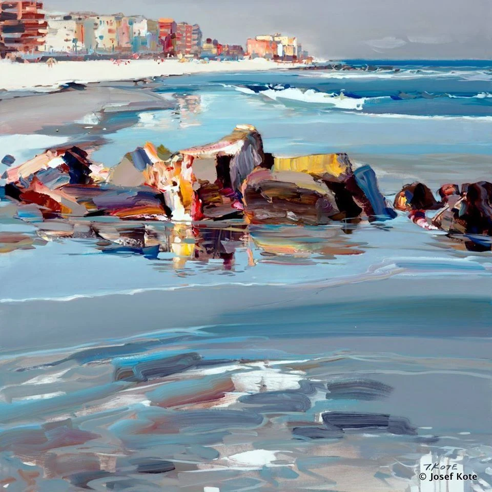 Йозеф начинал с масла, но переборов себя взялся за акрил, который отражает его темперамент. Быстрое высыхание требует скоростного исполнения и предвидения. Художник улыбается, что благодаря этому всегда в тонусе.