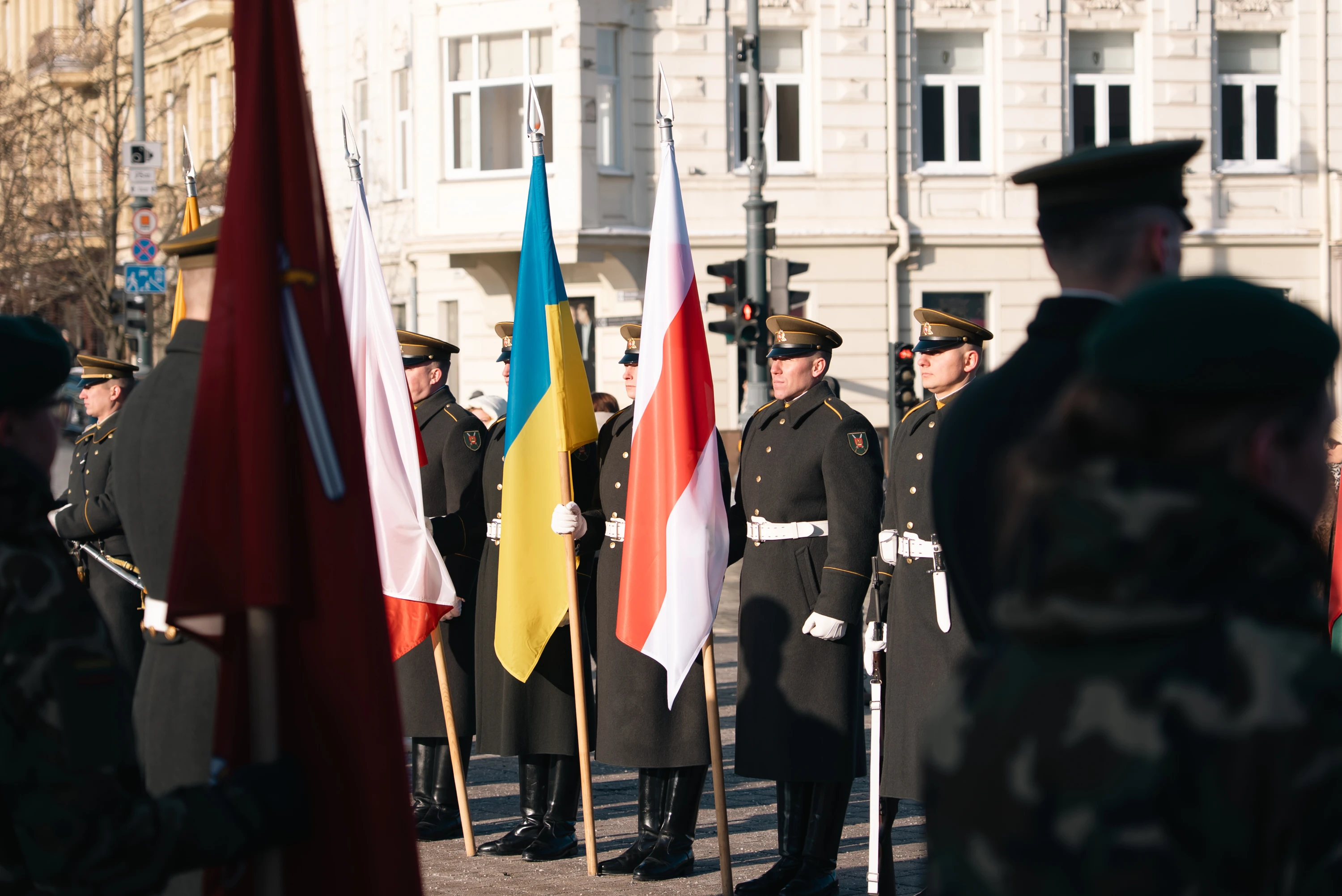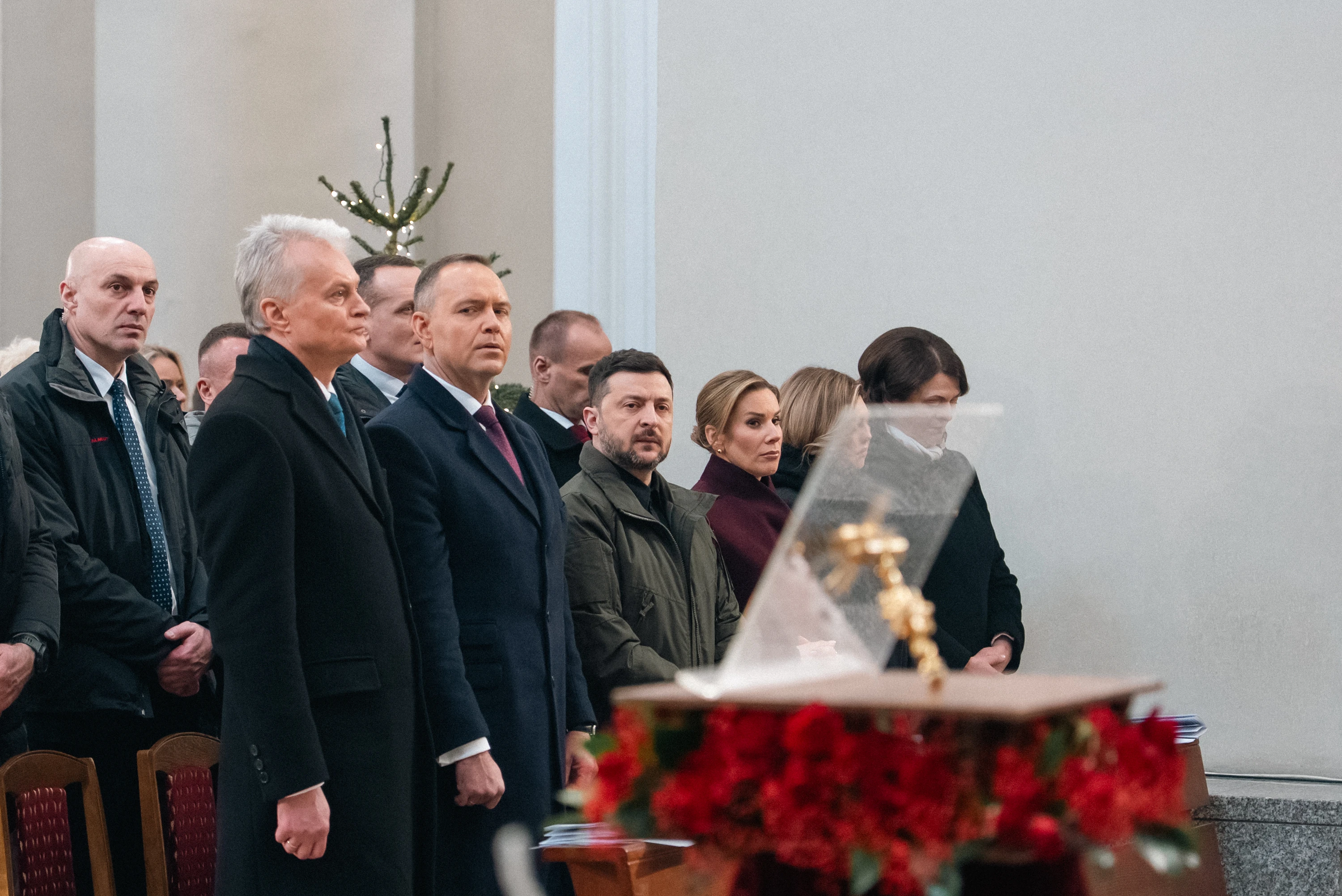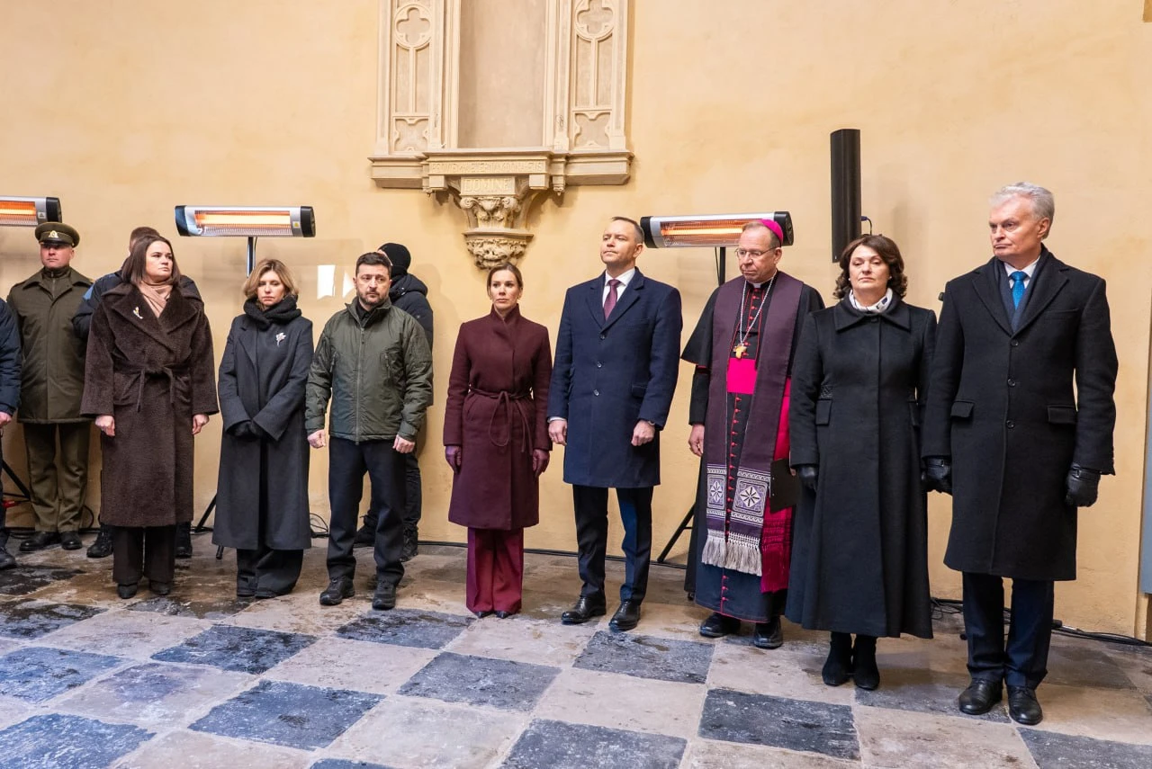 В торжественных мероприятиях в Вильнюсе приняли участие президенты Литвы, Польши и Украины Гитанас Науседа, Кароль Навроцкий, Владимир Зеленский, а также лидерка демсил Беларуси Светлана Тихановская.