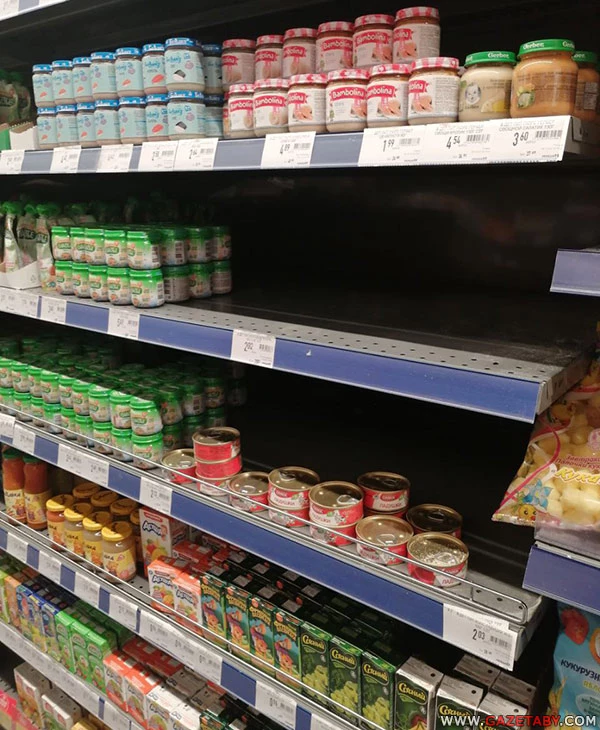 — Кукурузы больше нет, — разводит руками сотрудница одного из магазинов, пока вторая пытается как-то растянуть на полке несколько последних банок, чтобы закрыть брешь.