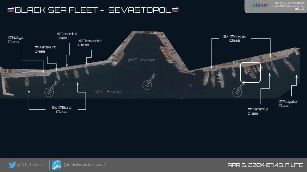 OSINT-разведка показала спутниковые снимки, на которых судно «Коммуна» в Севастополе повреждено.